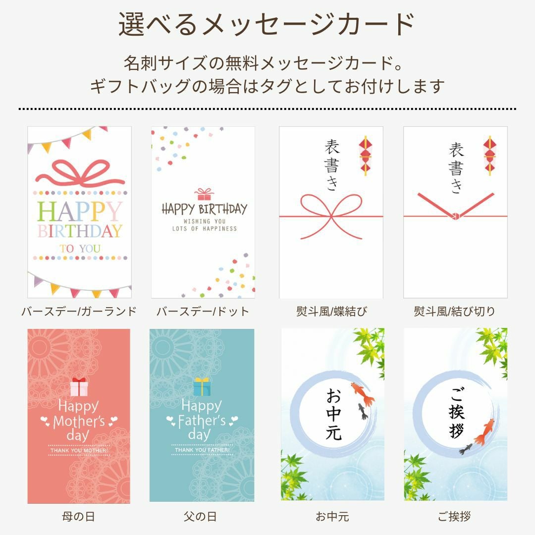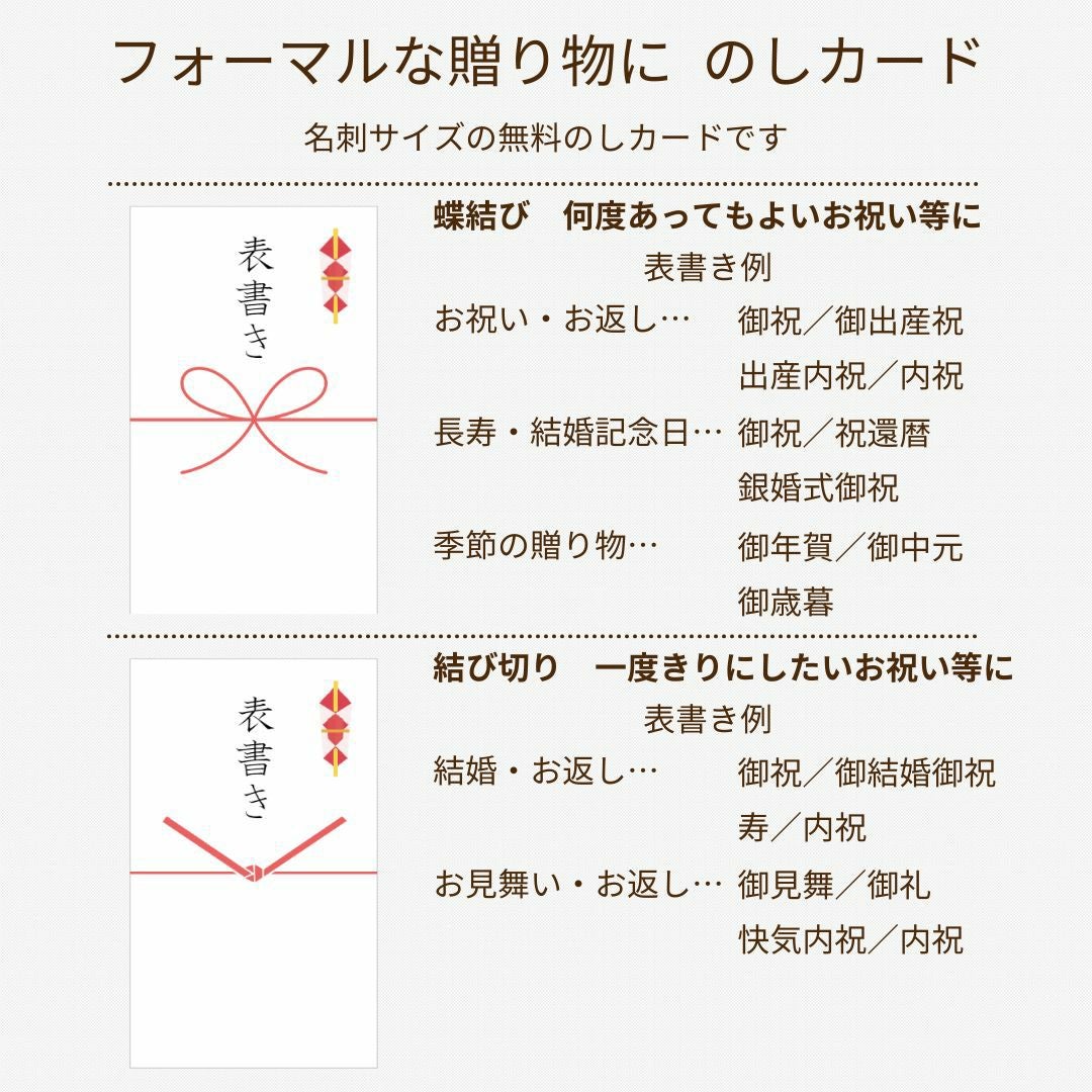NARUMISMでは、ギフトでもご利用いただけるように、熨斗やメッセージカードを無料でお付けしています。
