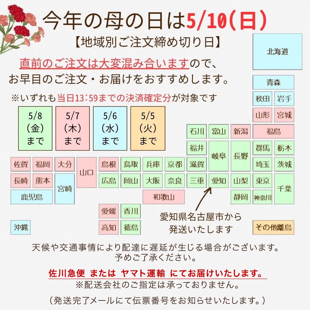 それより前のお日にちにはお届けできません。